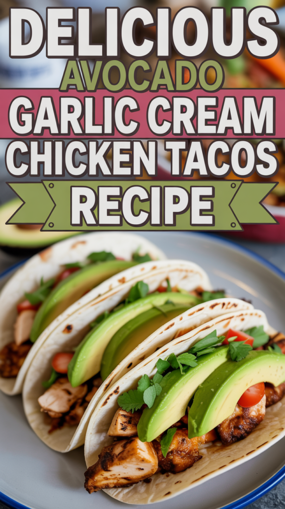 These Avocado Garlic Cream Chicken Tacos are a delicious and satisfying meal that combines tender chicken with a creamy avocado garlic sauce. This Tacos Recipe is perfect for a quick weeknight dinner or a casual gathering with friends.