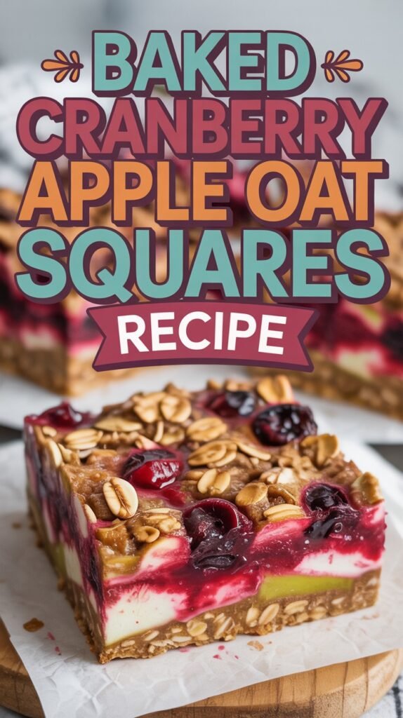 These oat squares feature layers of oats, fresh apples, and cranberries baked to perfection. The recipe takes about 45 minutes from start to finish and serves 9 squares, making it a perfect treat for sharing.