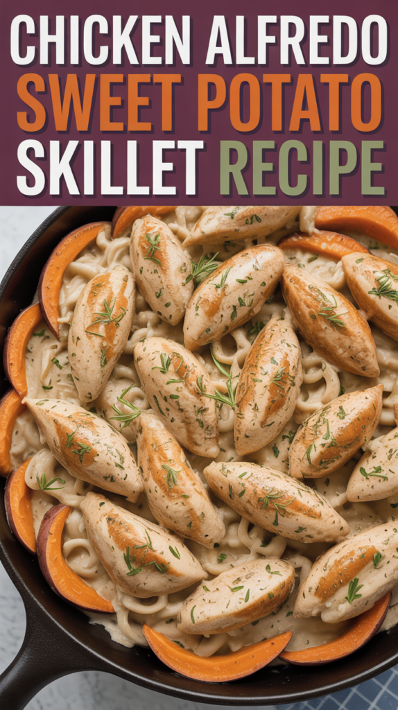 This Chicken Alfredo Sweet Potato Skillet recipe combines tender chicken with creamy Alfredo sauce and sweet potatoes for a delicious one-pan meal. It’s a satisfying chicken recipe that is both comforting and nutritious.