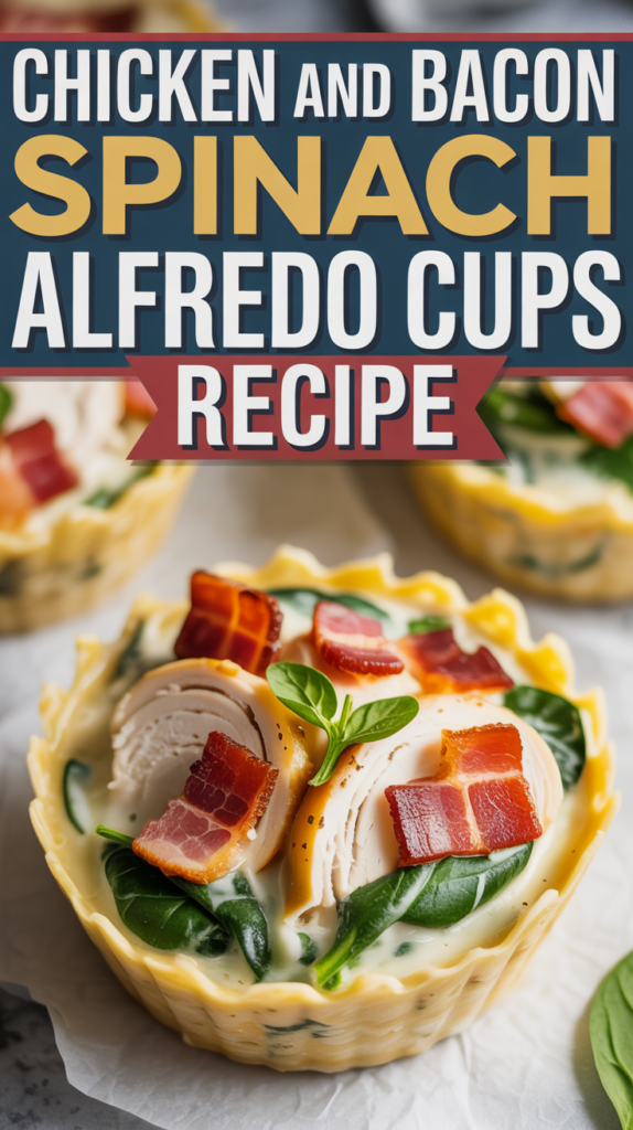 This Chicken and Bacon Spinach Alfredo Cups Recipe combines tender chicken, crispy bacon, and fresh spinach in a creamy Alfredo sauce, all served in crispy pastry cups. It’s a delightful dish perfect for appetizers or a light meal.