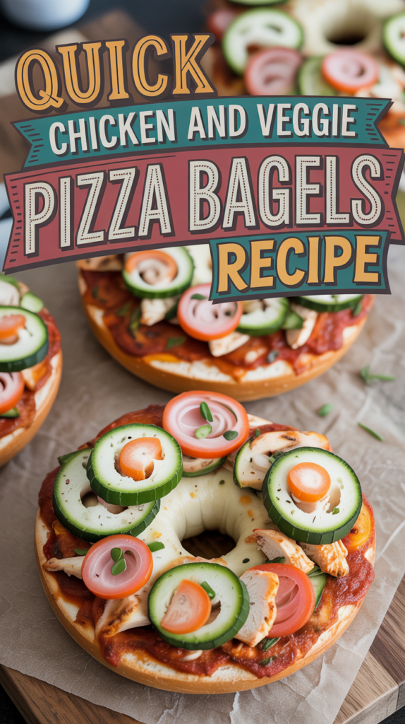 This Chicken and Veggie Pizza Bagels Recipe is a quick and delicious meal option that combines the flavors of pizza with the convenience of bagels. Topped with tender chicken, fresh vegetables, and melted cheese, these bagels make for a satisfying lunch or dinner.