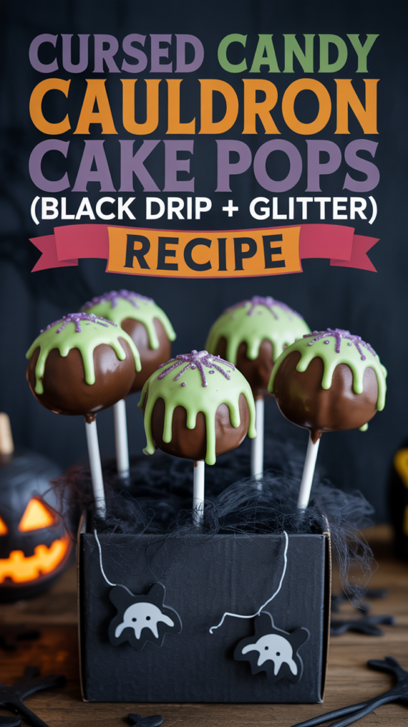 These Cursed Candy Cauldron Cake Pops are a fun and festive treat perfect for Halloween celebrations. With a striking black drip and shimmering glitter, they are sure to impress your guests and add a spooky touch to your dessert table.