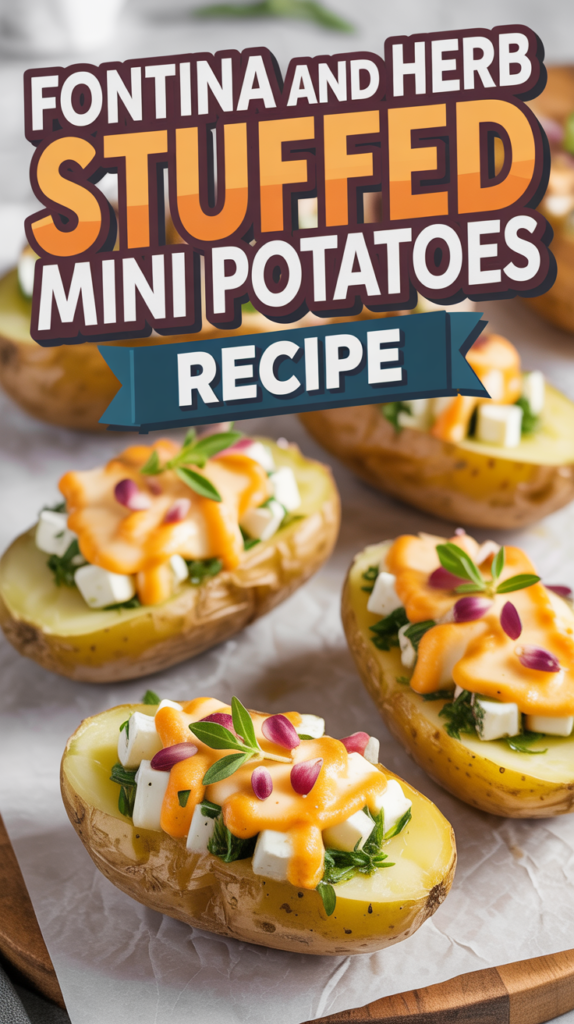 This dish features tender mini potatoes hollowed out and filled with a rich mixture of Fontina cheese, herbs, and seasonings. The recipe takes about 30 minutes from start to finish and serves 4-6 people.