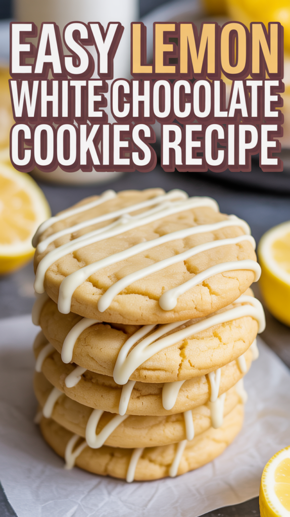 This Lemon White Chocolate Cookies Recipe features a soft and chewy cookie base infused with fresh lemon zest and juice, complemented by creamy white chocolate chips. The recipe takes about 30 minutes from start to finish and makes approximately 24 cookies.