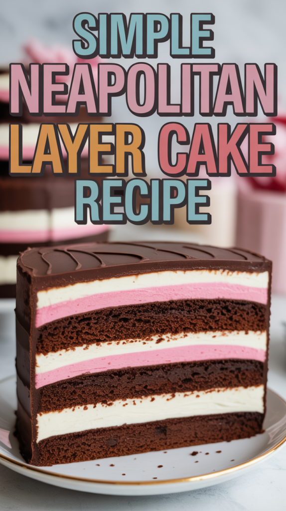 This Neapolitan Layer Cake Recipe combines three delicious flavors: chocolate, vanilla, and strawberry. Each layer is distinct yet harmoniously blends together, making it a delightful dessert for any occasion.