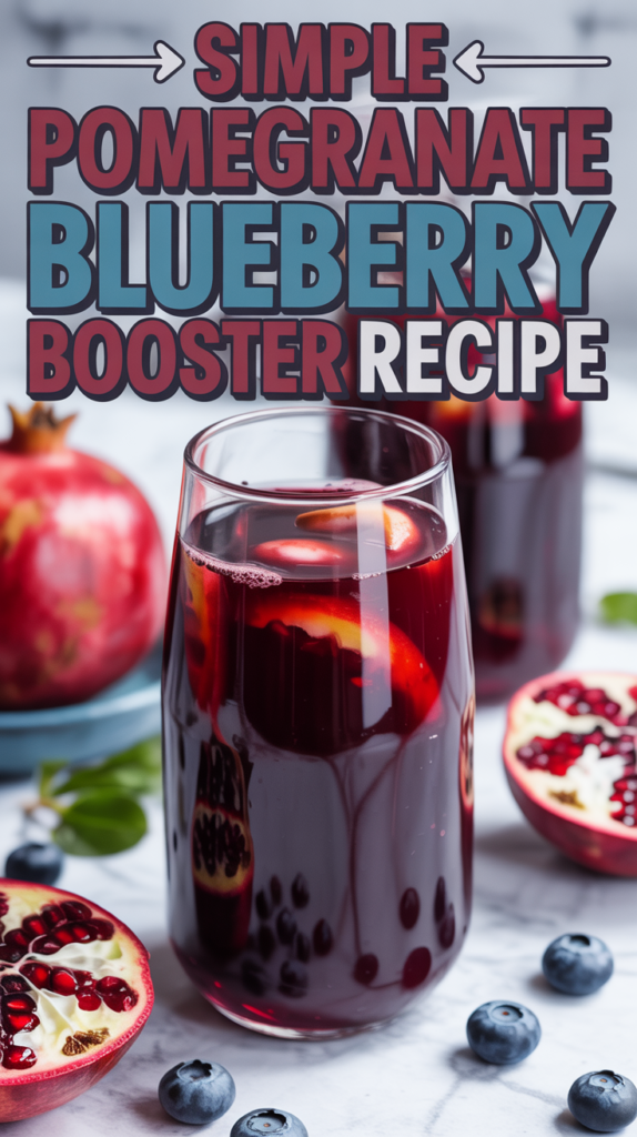 This Pomegranate Blueberry Booster Smoothie Recipe is a refreshing and nutritious drink packed with antioxidants and vitamins. Combining the tartness of pomegranate with the sweetness of blueberries, this smoothie is perfect for a quick breakfast or a healthy snack.