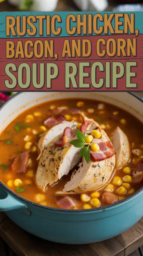 This Rustic Chicken, Bacon, and Corn Soup Recipe combines tender chicken, crispy bacon, and sweet corn for a hearty and satisfying meal. Perfect for chilly days, this soup is a comforting choice for any occasion.