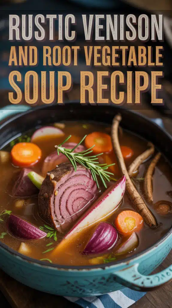 The recipe is straightforward and ideal for those looking to create a comforting soup that highlights the natural taste of venison and seasonal vegetables.