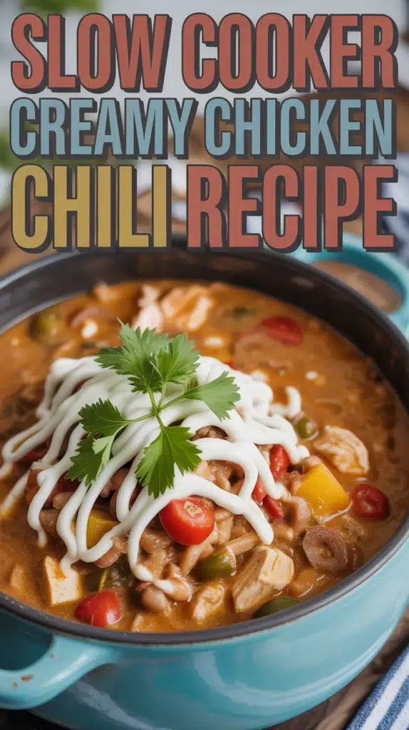 This Slow Cooker Creamy Chicken Chili is a comforting and hearty dish that combines tender chicken, beans, and a rich, creamy base. Perfect for busy days, this Crockpot recipe allows you to set it and forget it, resulting in a delicious meal with minimal effort.